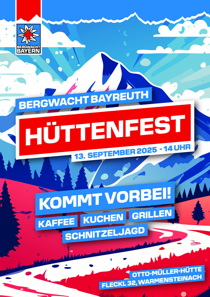 Die Bergwacht Bayreuth lädt euch herzlich ein zum Hüttenfest an der Otto-Müller-Hütte in Fleckl!